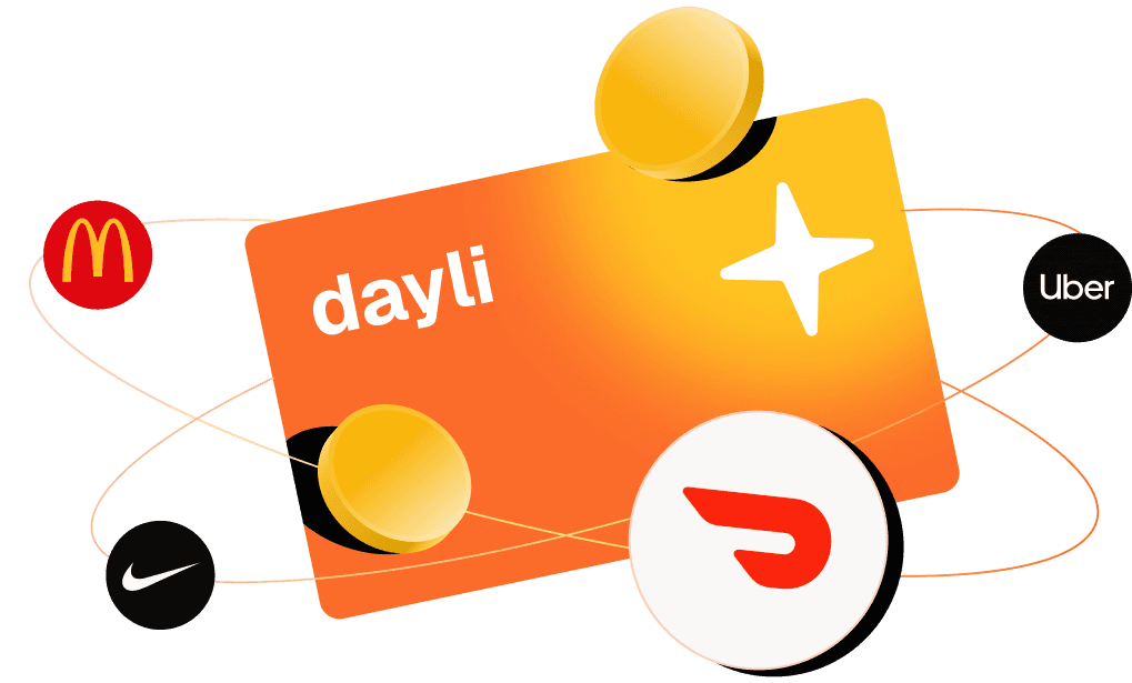 3 Dayli is an independent product and is not affiliated with DoorDash, Mastercard, or any other third-party brands referenced on the website or in marketing materials. Any use of the DoorDash name or Mastercard branding is for the purpose of communicating the card's capabilities and acceptance and is not intended to imply any direct business relationship with those entities. Dayli does not endorse any brands referenced in our marketing material or website. Dayli is neither responsible nor liable, directly or indirectly, for any damage or loss caused or alleged to be caused by or in connection with your use of such third-party products referenced in our marketing material or website.